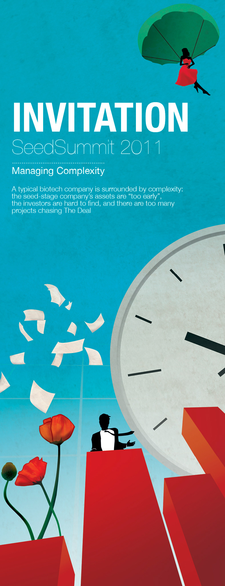 Invitation for NovoSummit, hvor jeg lavede layout og illustrationer fra bunden.